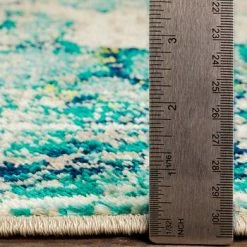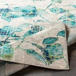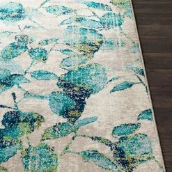 Calm the mood and appeal of any space through the serene beauty of delicate leaf motifs rendered in brisk hues of teal, aqua and dark blue on Abbie & Allie Rugs soft to touch Paramount PAR-1113 area rug.