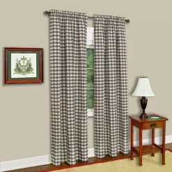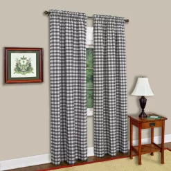 Buffalo Check has a charming, allover check pattern that comes to life in a stunning window curtain panel. This sweetly checked pattern will bring a bit of country warmth to your home. Available in a variety of colors, you are sure to find the perfect match for your decor. Rod pocket measures 1-1/2 in. for easy shirr on rod which makes it a breeze to hang on any decorative or traditional window rod. Matching valance, tie up shade and tier pair also available, all sold separately.