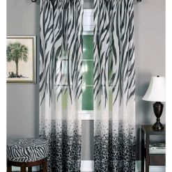 The Kenya Curtain Panel is a sheer panel with engineered animal prints on linen like textured cloth, combining leopard graduating into a zebra pattern. Sure to bring style to any décor.