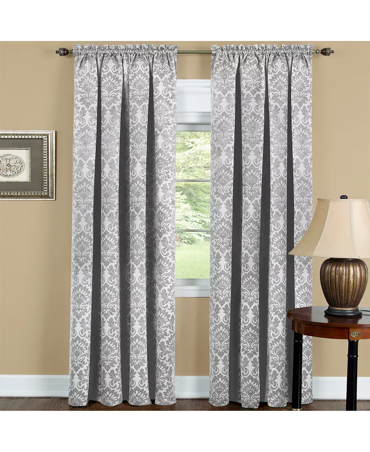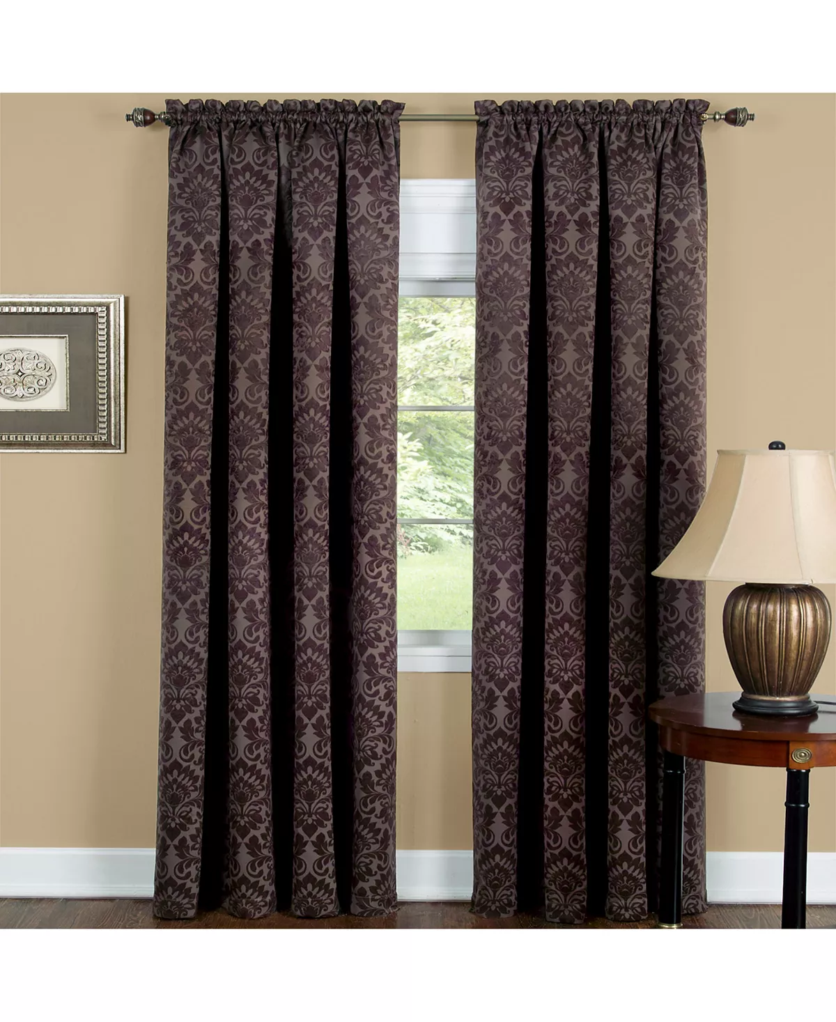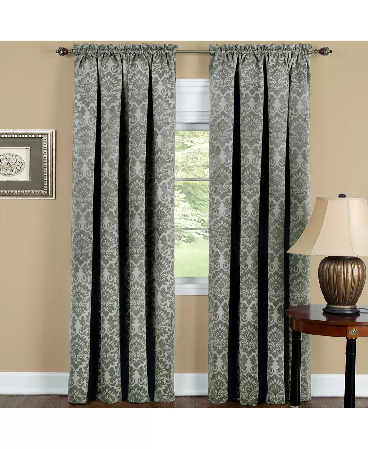 The Sutton Curtain Panel provides an elegant look for your home. It’s polyester damask fabric is also 100% blackout. The Sutton Curtain Panel is available in two different lengths. Also, it can be used, with an innovative wrap around rod, coordinated with the matching Sutton Waterfall Valance, or with additional panels (all sold separately.) It’s rod pocket fits most decorative rods under 1.5 inches in diameter.