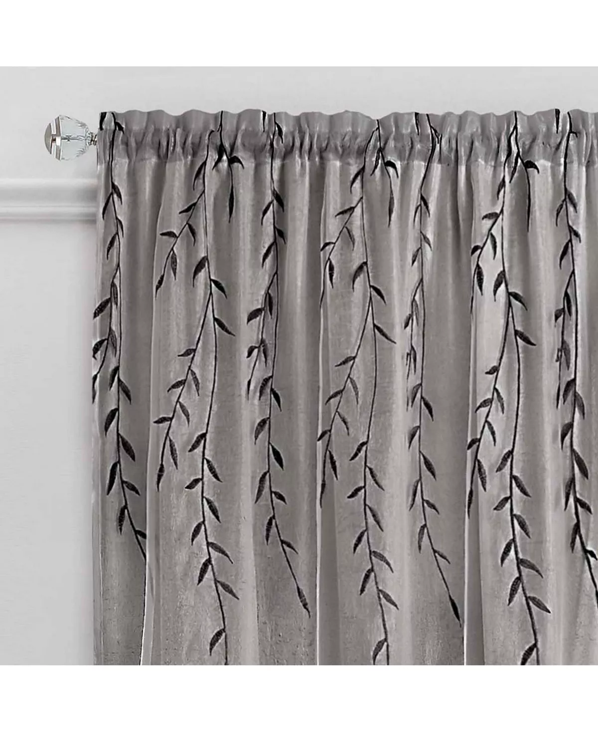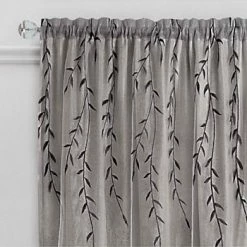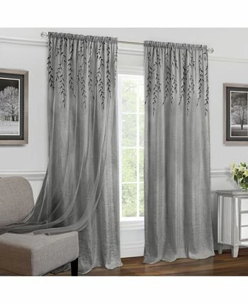 The Willow Rod Pocket Panel is an embroidered sheer organza overlay attached to a crushed textured ground under panel. Creating a layered effect using only one rod. Beautiful embroidered falling leaves top the organza overlay and create a dramatic but tranquil perspective for any window in the home. Both the ground layer or the organza overlay could be tied to the side or in the middle to create additional charming arrangements for your window.