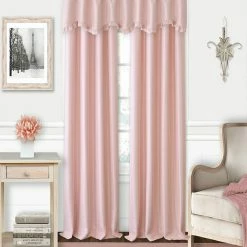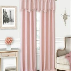 Soft and elegant, the Adaline Kids Ruffled Valance makes an adorable, yet upscale addition to the bedroom, nursery or play room. Ruffle trim is charming and sophisticated. Soft color palette of pink, lavender and grey is versatile and fashionable. 100% polyester.