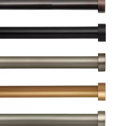 The Serena telescopic curtain rod set offers a contemporary design with cap finials, clean lines and trendy finishes. The set comes with a single rod, 2 finials and all the mounting hardware.