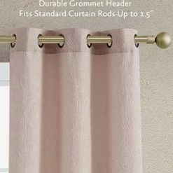 - Metal grommet header fits a standard curtain rod up to 1.5″ for easy hanging