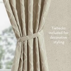 - Tiebacks can be tied together or used with curtain hooks (not included)