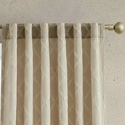 - Textured diamond trellis design provides stylish alternative to solid curtains