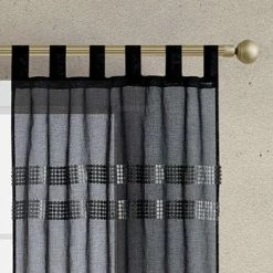- Tab top header allows for extra versatility and easy hanging on a standard curtain rod up to 1.5″