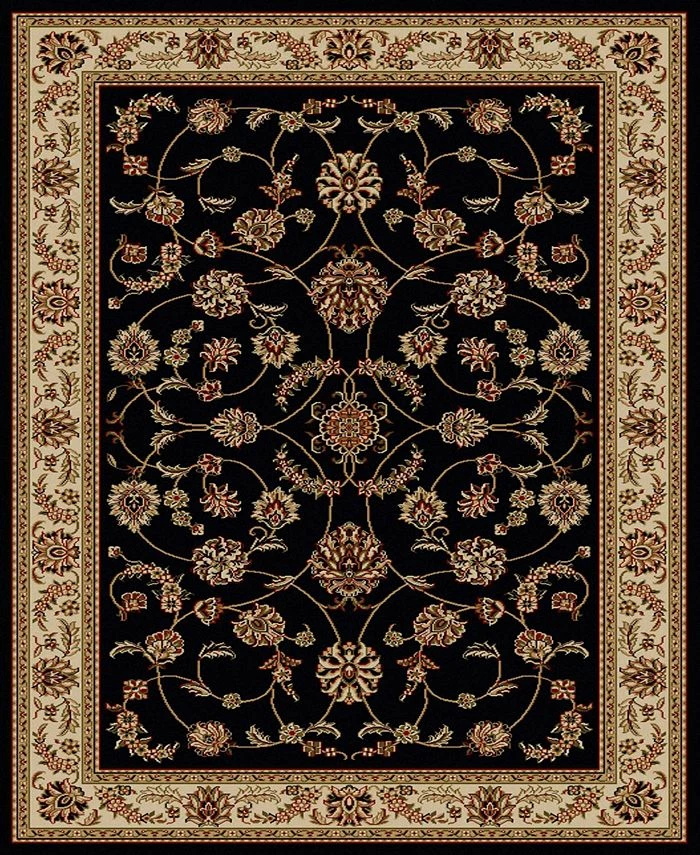 Winding and blossoming Persian-inspired botanical motifs seemingly float on the soothing black ground of this sumptuously soft traditional Pesaro isfahan style by KM Home, presenting a look that can bring a tranquil atmosphere to any space.