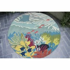 A ray floats above a charming scene of tropical fish in a coral reef in Liora Manne’s Ravella Ocean View area rug. The vivid colors would add a delightful punch to the floors in any space.