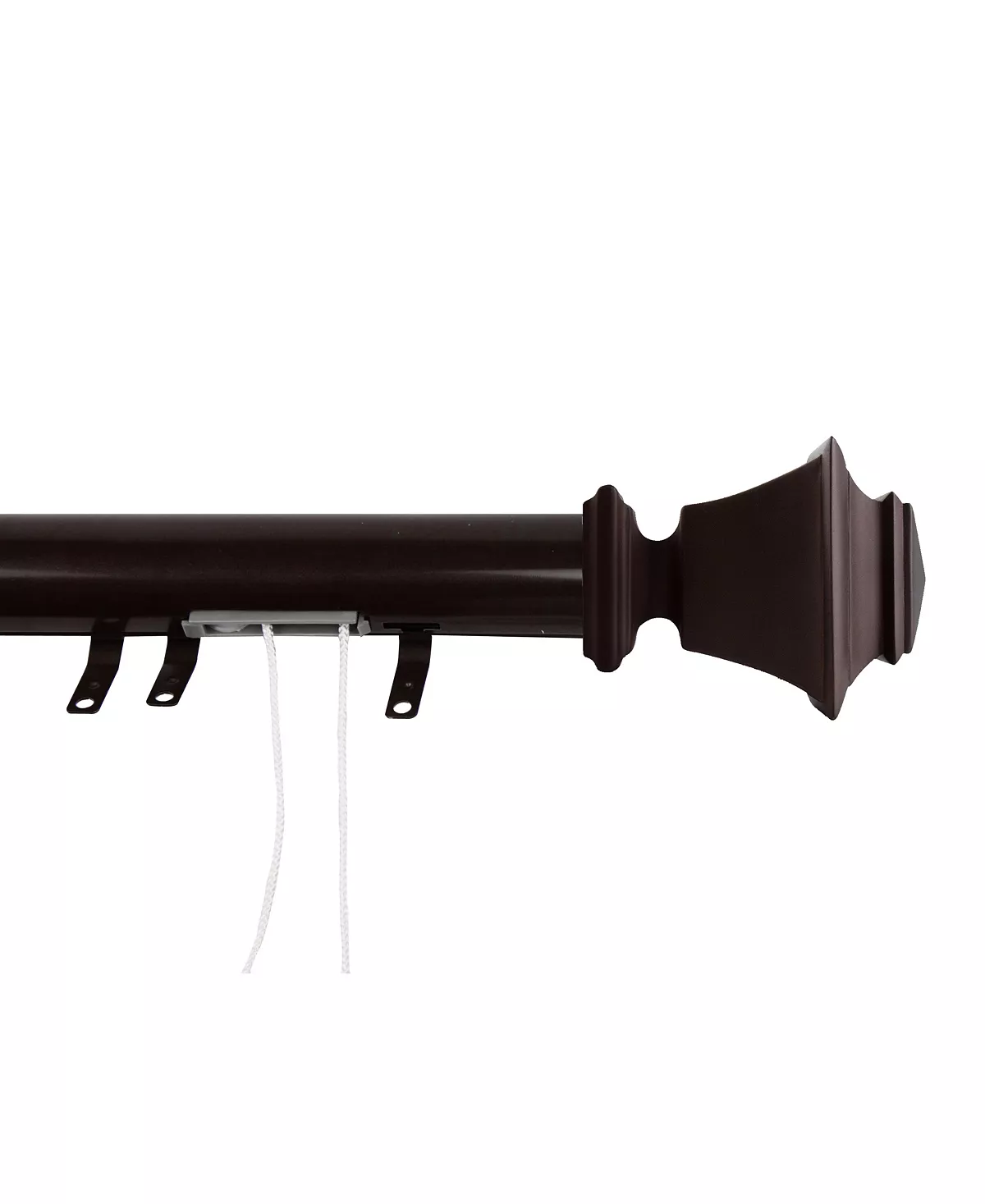 - Set includes one 84-156 in. extendable traverse rod with 40 sliders, 2-finials, 2-brackets, 3 center support, 1-cord device and mounting hardware