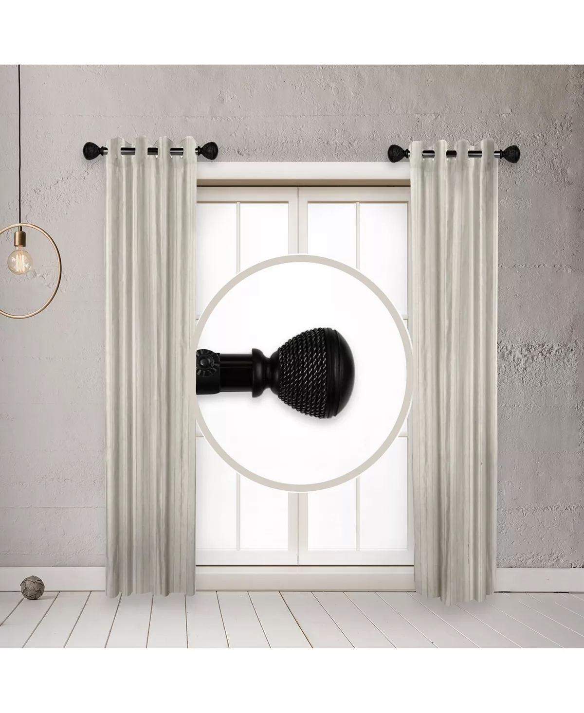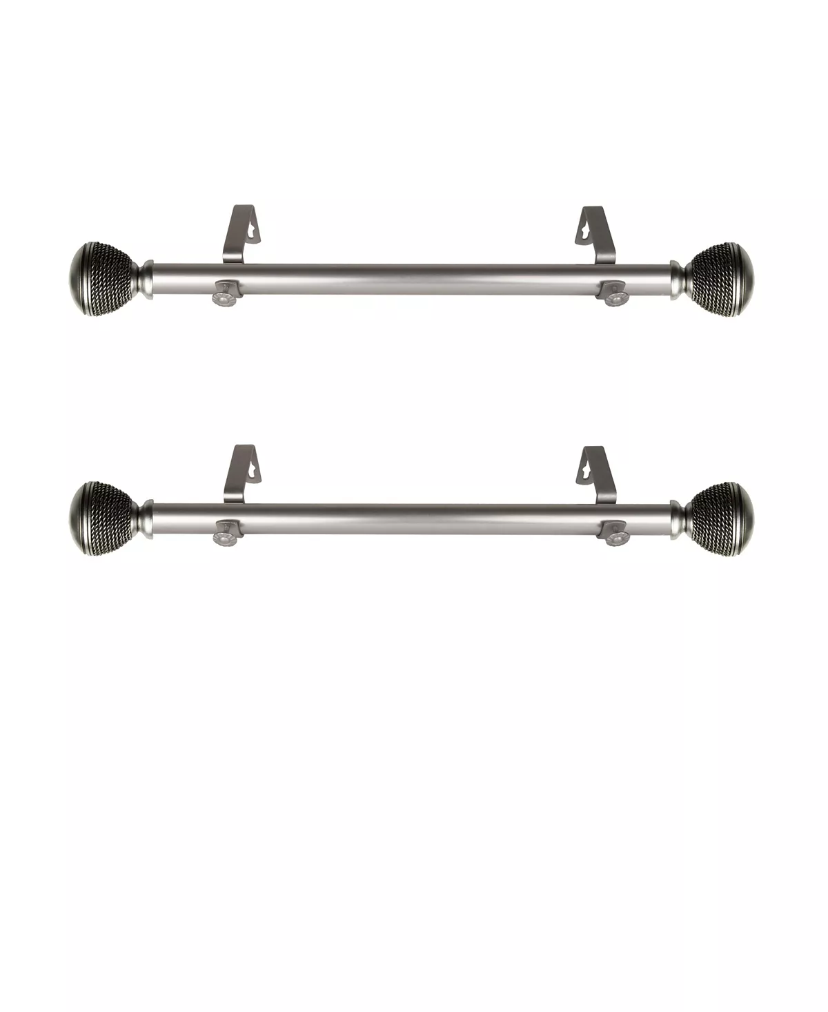 - Includes: two 1 inch diameter side rods, finials , brackets and mounting hardware
