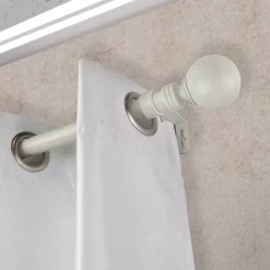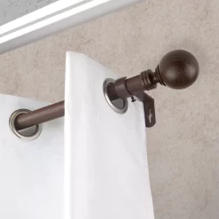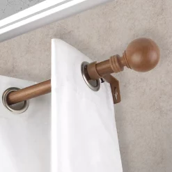 Decorate your window treatments with faux wood Globe curtain rod from Rod Desyne.