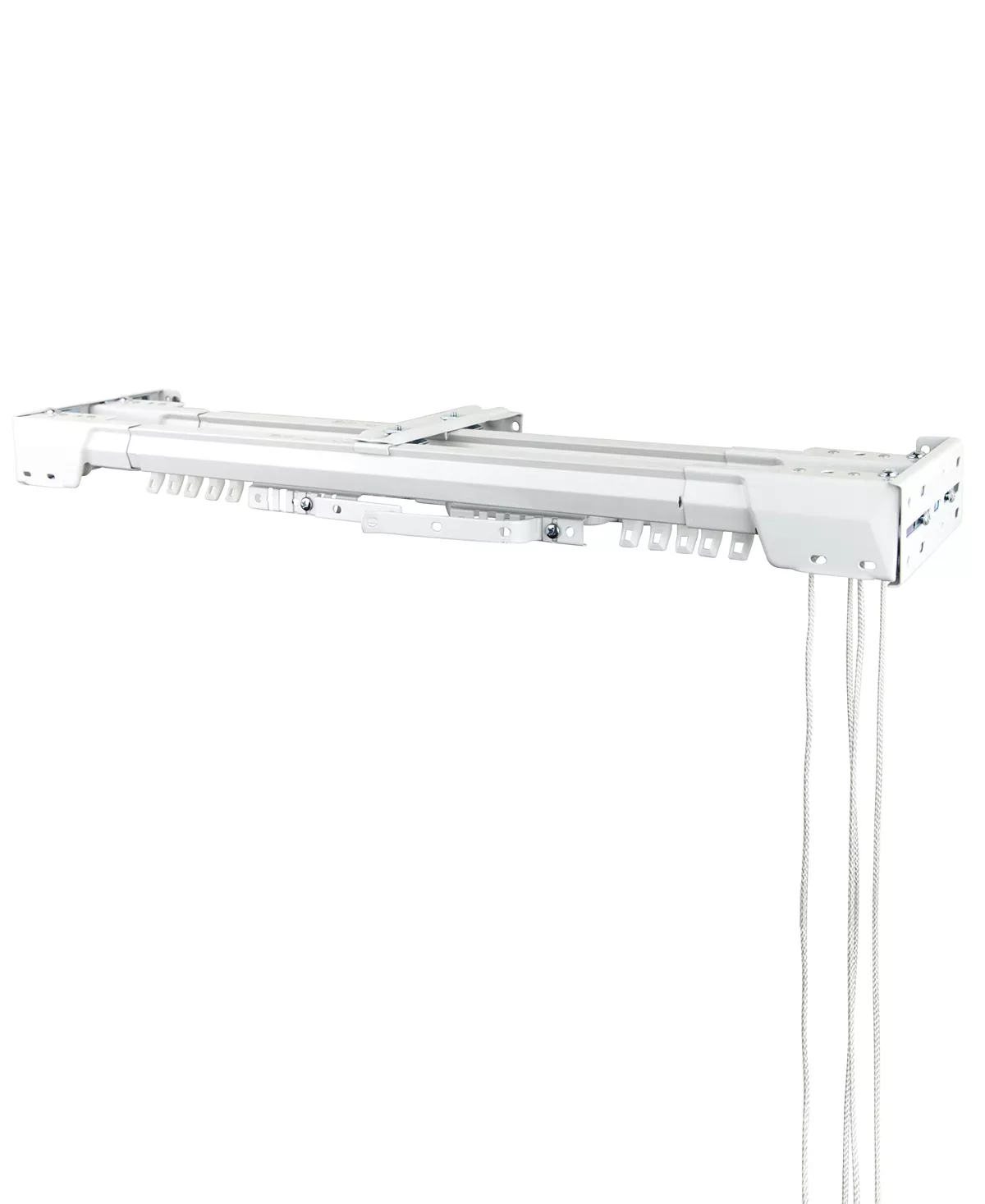 This heavy-duty center open double traverse rod is crafted from durable steel and designed for use with pinch pleat drapes and sheers. The convertible draw cord is pre-strung on the right but can be moved to the left.