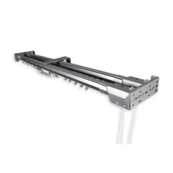This center open heavy duty Silver traverse rod is designed for use with pinch pleat draperies. It features high quality smooth traverse operation. Superior slide fit between inner and outer rod.