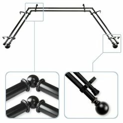 Our new 0.8125″” adjustable bay window double curtain rods are perfect for mounting valances and curtains over bay windows. Each side is adjustable from 20″ to 36″ and the center piece adjusts from 38″ to 72″ Also available as a single bay window curtain rod.