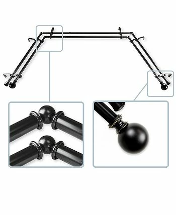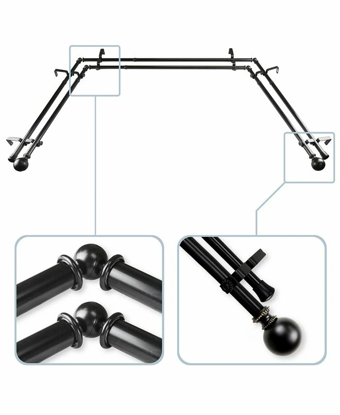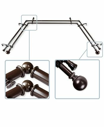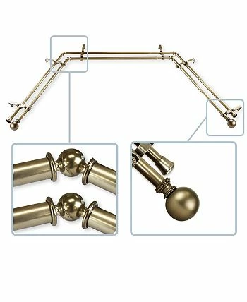 - Includes – Double Bay Window Rod, 2 Finials, 4 Corner Connectors, 7 Mounting Brackets and Mounting Hardware