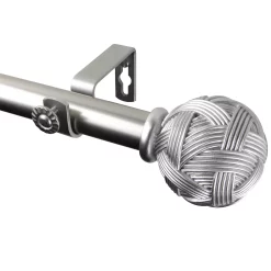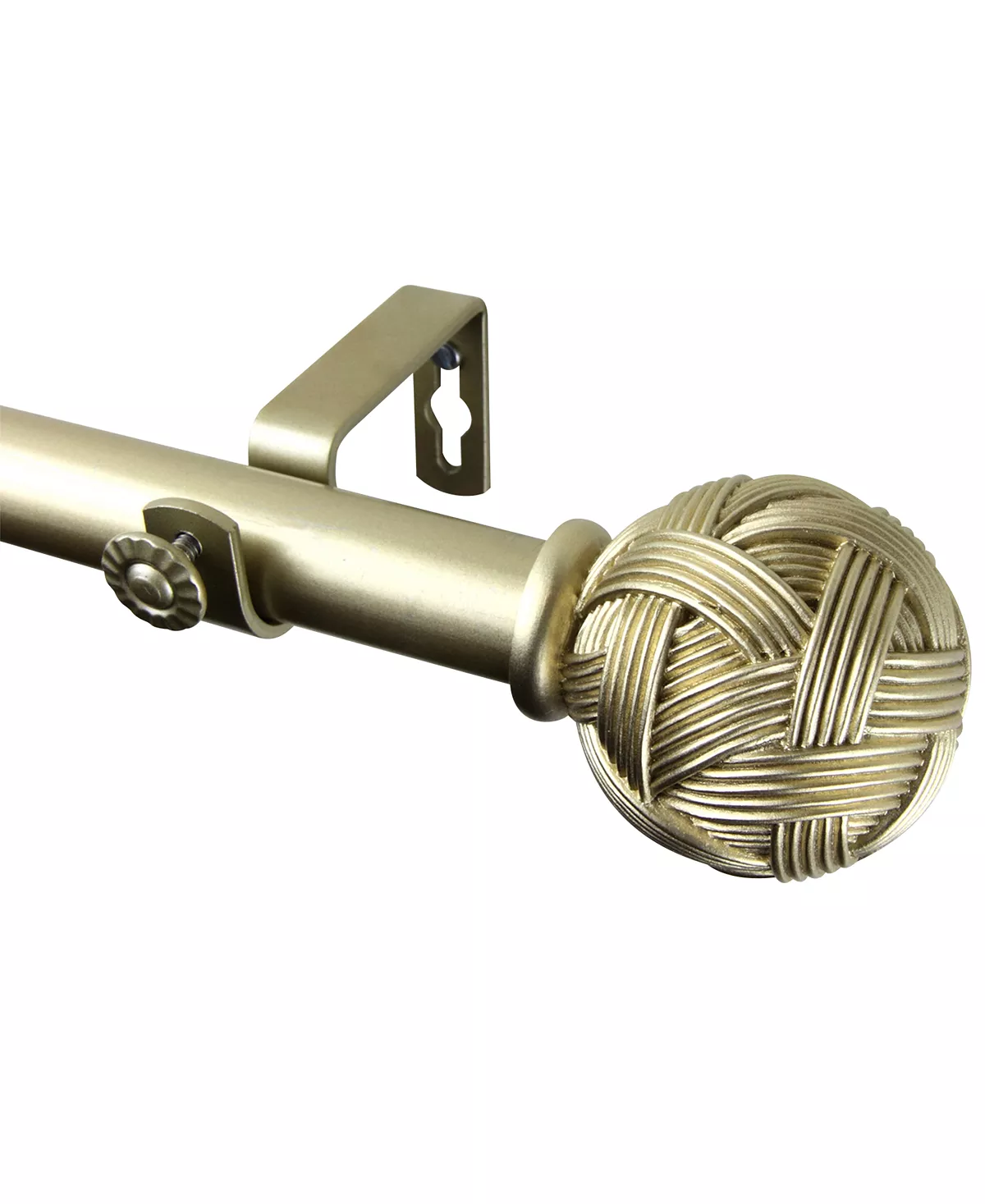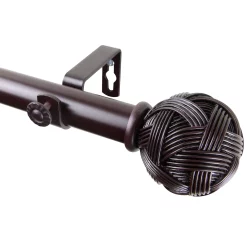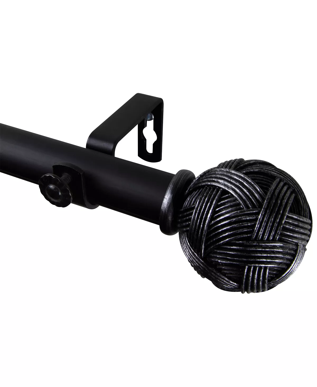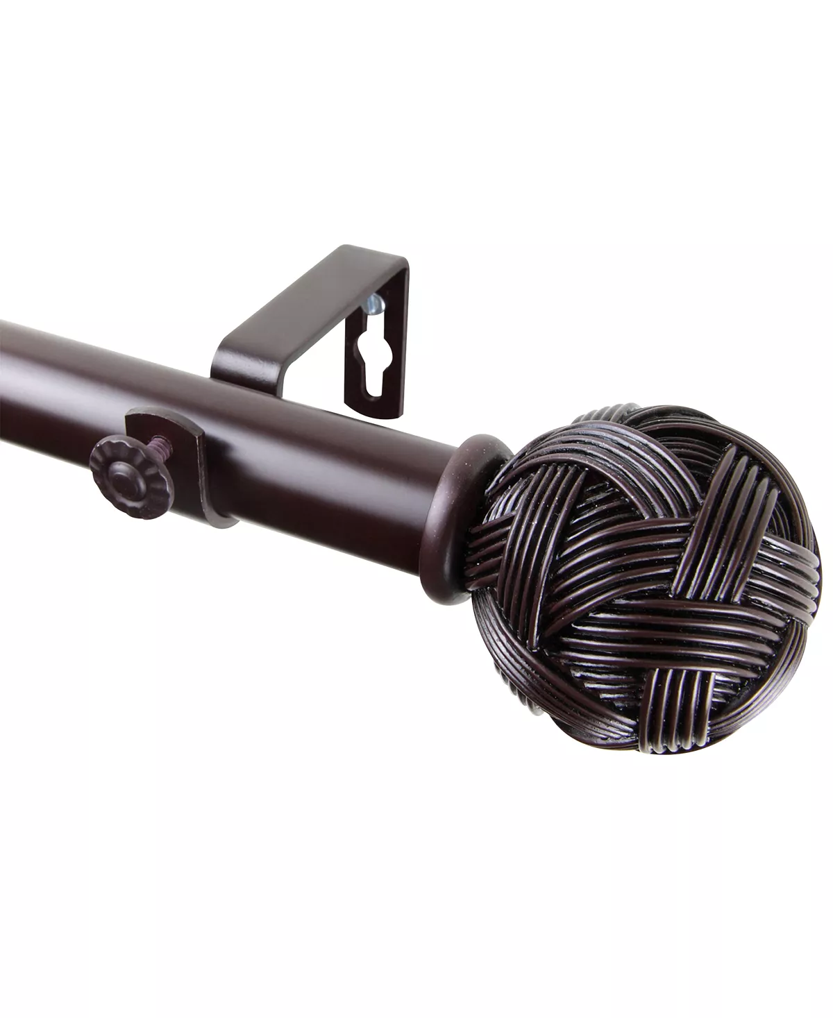 This curtain rod is crafted from steel and features resin finials in a twine design. Mounting brackets and hardware are included for easy installation.