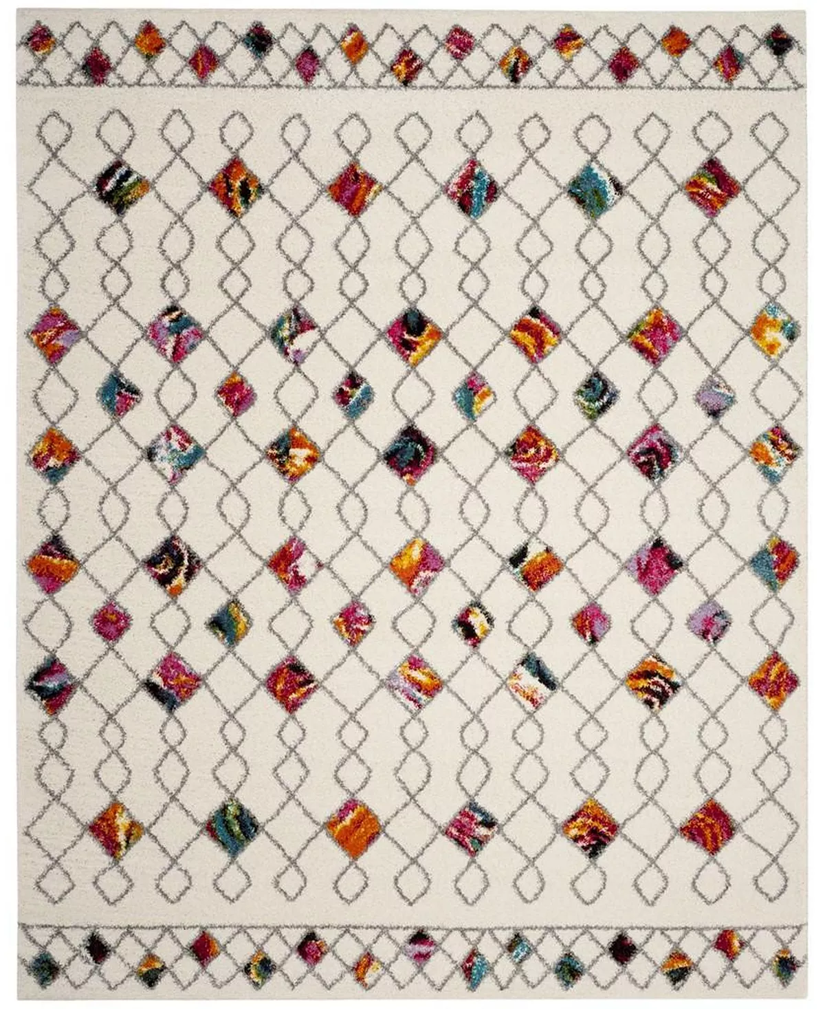 The hypnotic nesting circle motif of this Fiesta shag rug by Safavieh celebrates vivid, intense hues that bring alluring design and abundant color to room decor. Swirls of color and high-touch texture add invigorating character to living spaces. Power-loomed with durable synthetic yarns, for easy-care radiance and lasting beauty.