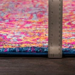 - Colors: Garnet ground with dark blue, saffron, burnt orange, teal and white accents