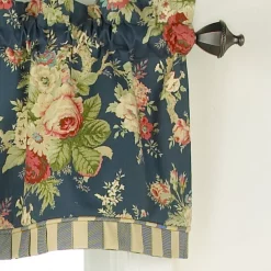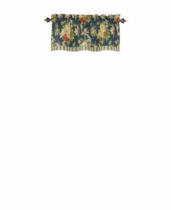 Refresh any room in your home with classically elegant window treatments by Waverly®. This timeless valance features blush florals on a striking blue ground. Box-pleat striped trim adds charming style.