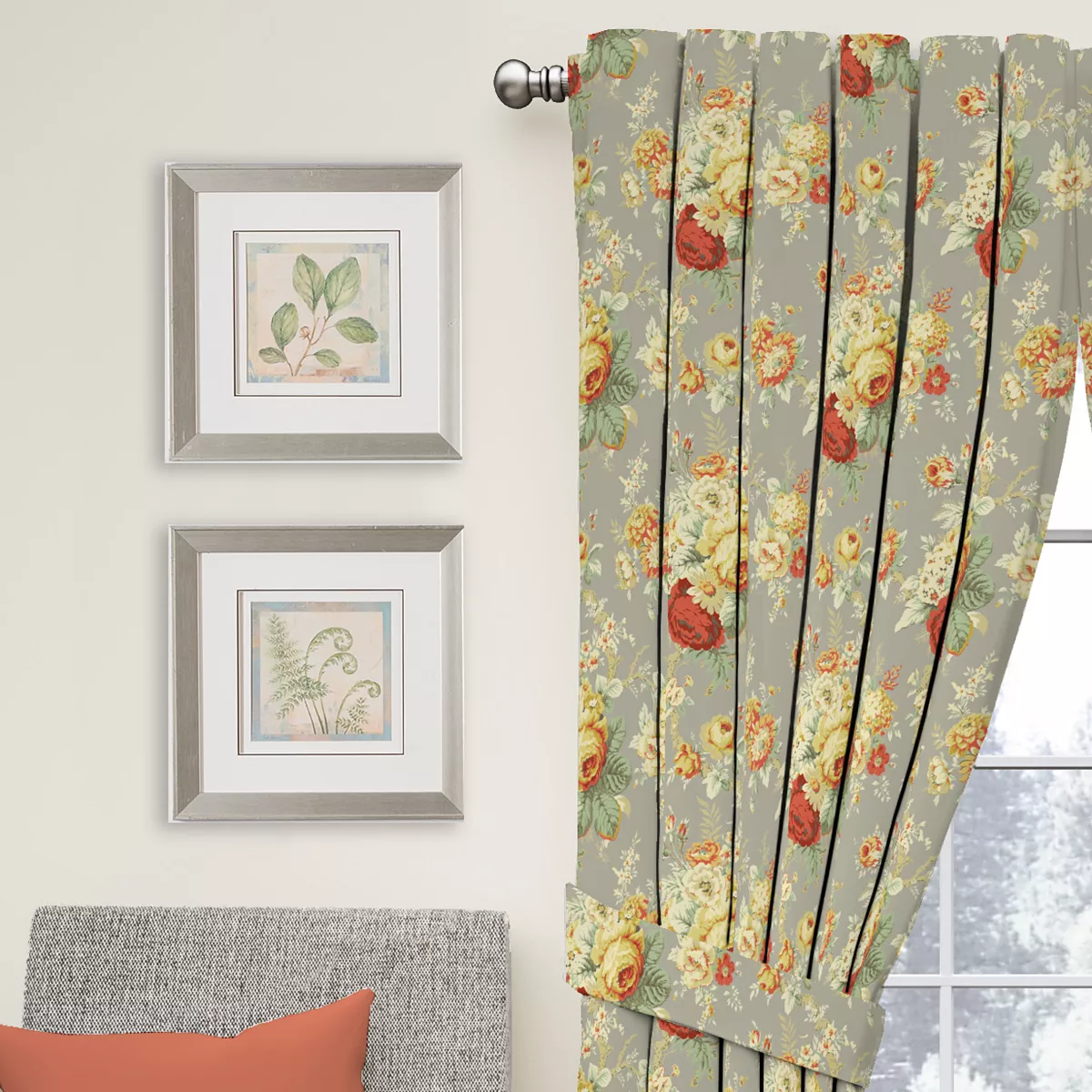 Drape your home in elegant window curtains by Waverly. Exquisite and versatile, the Sanctuary Rose curtain panel features large scale cabbage roses on a soft ground. Perfect for kitchen, bedroom, or living room. Pair with the Sanctuary Rose valance to complete the look. Valance sold separately.